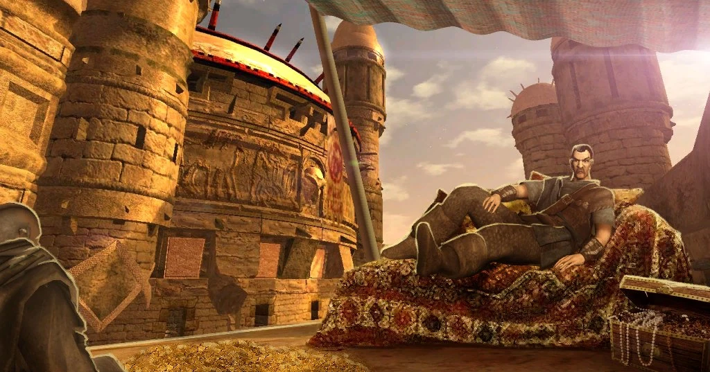 Na Argaanu Diego řekl hrdinovi, že je i jiná cesta jak se pomstít. Navedl jej k pátrání starého chrámu v horách. Diego věděl, že paladinové chrám přímo fanaticky hledají. Pro Diega totiž špehovalo několik dvorních sluhů lorda Hagena. Pak se Diego s hrdinou rozloučil a vyplul do Stewarku. Ve Stewarku se však Diego zapletl s rádcem místního barona Mermundem, který byl tajný myrtanský vyslanec. Diego totiž zahájil ve městě nějaké obchody, díky nimž jak sám věřil, povzbudil morálku ve městě. Mermund však požadoval, aby Diego ze svých obchodů odvedl daň. Po jejich hádce Mermund náhle zmizel, byl unesen rebely, vedenými bratrem barona. Diego skončil pro podezření z vraždy Mermunda ve vězení. Naštěstí Diegovi pomohl hrdina s Gornem, díky nimž byl osvobozen. Diego a Gorn poté společně vypluli do Thorniary, aby Hagenovi prokázali svou nevinu.