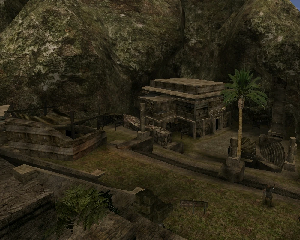 Tábor byl založen Ravenem, jinak také Havranem, a to bezprostředně po pádu magické bariéry. Byl vystavěn z trosek dávného města a obýván bandity. Ty sem, samozřejmě spolu s Havranem, zavezli piráti. Důvod toho, že byl vůbec tábor obydlen, je dvojí- nalézá se zde velký zlatý důl, ale také, což byl Ravenův skutečný záměr, je zde velký Adanův chrám a také hrobka kněze Khardnimona. Raven se chystal Khardimona probudit a otevřít zapečetěnou bránu ve chrámu, protože se mu zjevil Beliár a zdělil, že se zde nachází jeden mocný artefakt, do kterého dokonce sám vložil část své moci; meč Beliarův dráp. Khardimon posloužil dobře a Ravena nyní nezajímalo nic než právě Dráp. Přenechal starost o zlato svému pobočníkovi Bloodwynovi a sám se vydal do chrámu, kde provedl rituál, který navrátil meči moc. Potom se snažil vyvolat armádu, se kterou by potáhnul na lidstvo, ale tento šílený plán mu zmařil Bezejmenný- zabil ho. Velení nad táborem pak převzal Thorus a bandité poměrně spokojeně žili. Nutno také podotknout, že Raven zajal mnoho Khorinisských občanů a zotročil je. Opět zakročil Bezejmenný a zachránil je.