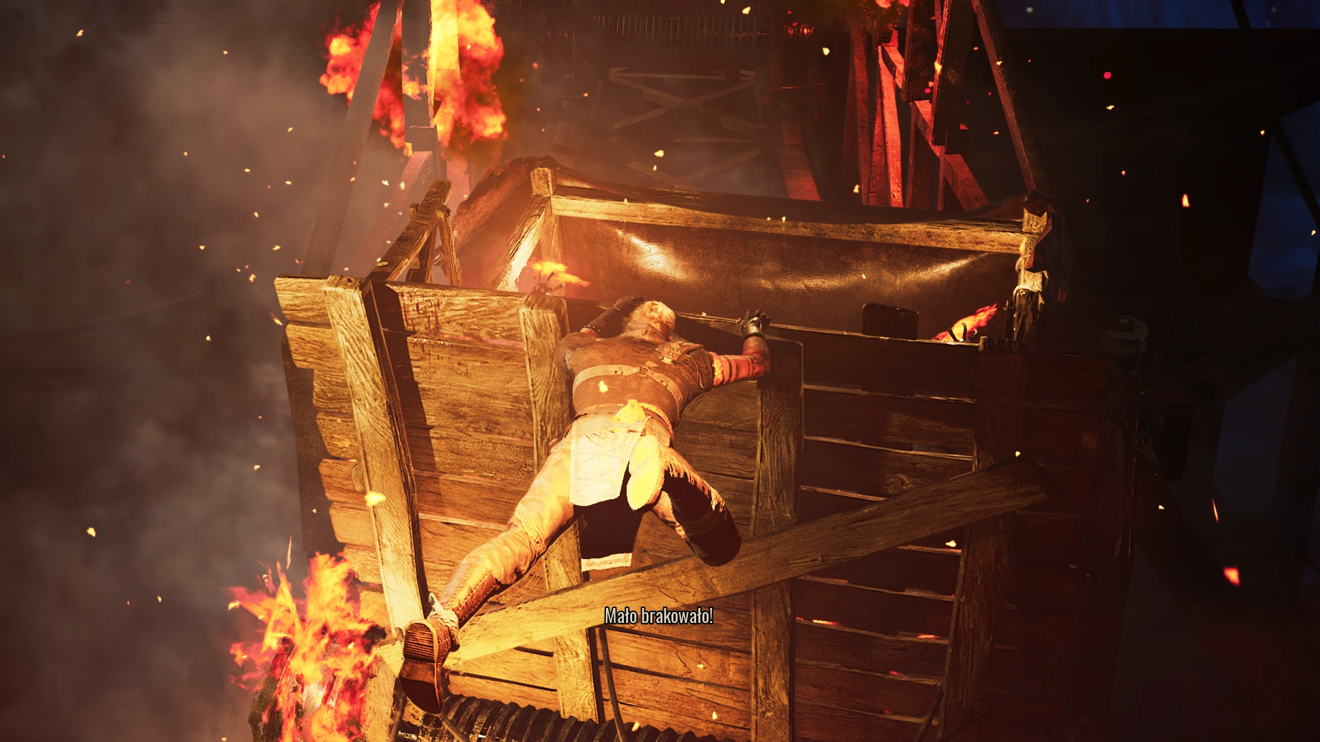 W trakcie strącania Bezimiennego bohatera do Górniczej Doliny na dole pada okrzyk, a następnie potężna ognista fala podpala okolicę oraz doprowadza do eksplozji windy. Cała konstrukcja się wali, a bohater desperacko walczy o życie, próbując się utrzymać na niestabilnej budowli. Po zawaleniu windy sytuacja trochę się uspokaja. Bezimienny odchodzi od miejsca ataku, ale cały plac wymian stoi w płomieniach.