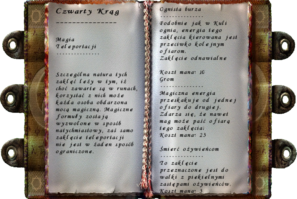 Jest to księga runiczna czwartego kręgu magii. Objaśnia ona zaklęcia teleportacji oraz opisuje czary ognistej burzy, gromu i śmierć ożywieńcom.
