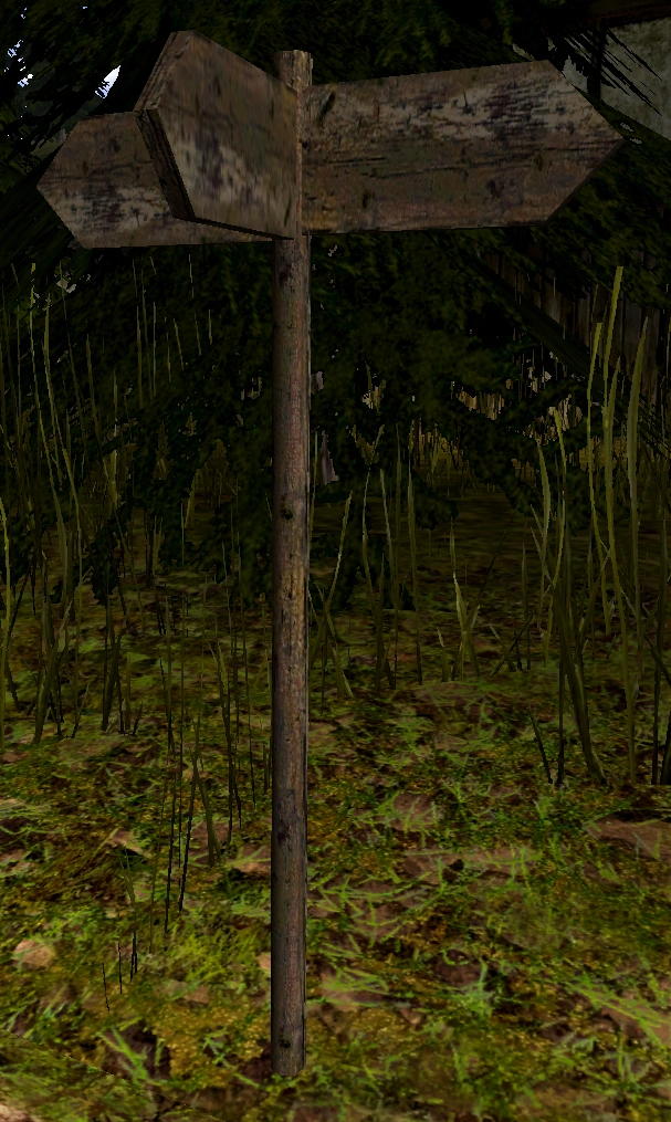 - W Gothic II tak naprawdę istnieje tylko jeden model drogowskazu – wielokierunkowe złożone są z pojedynczych drogowskazów nałożonych na siebie, natomiast wersja metalowa z lampą to ten sam drewniany drogowskaz umieszczony w metalowym obiekcie.