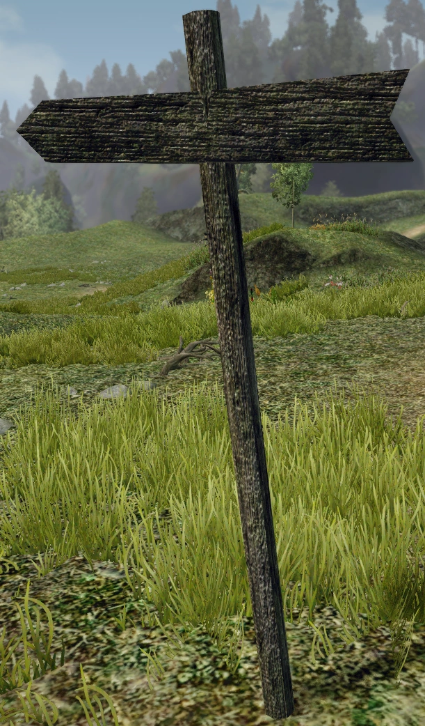 Drogowskazy występują na rozwidleniu wielu ścieżek. Wskazują drogę do określonego miejsca. Po ich podświetleniu pojawia się napis z nazwą miejsca, do którego dana ścieżka prowadzi.