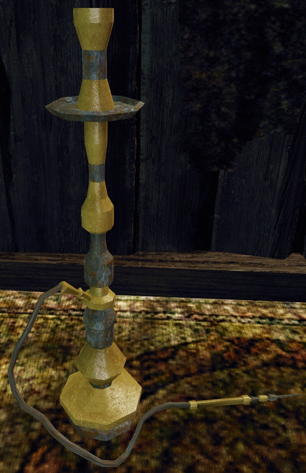 Jest podpisana jako rura. Fajki wodne nie są już tak często spotykane. Największą popularnością cieszą się te, których właścicielem jest Abuyin. Można u niego za darmo skorzystać z fajki. Szuka on różnego rodzaju mieszanek, które Bezimienny może mu przynieść. Każdego wieczora, większość kupców z targowiska wędruje w tamto ustronne miejsce, aby się napić ginu, bądź zapalić tytoń.