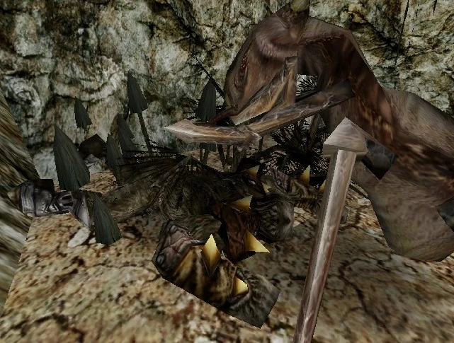 - Nie jest do końca pewne, czy sam się zabił. Ten fakt podważa obecność pełzacza. Jednak biorąc pod uwagę wszechobecność orków oblegających zamek, najpewniej to pełzacz był w jaskini pierwszy. Gash-Pak mógł nawet z nim nie walczyć, o czym świadczy fakt, że jego topór jest wciąż w ekwipunku, a nie leży na ziemi.