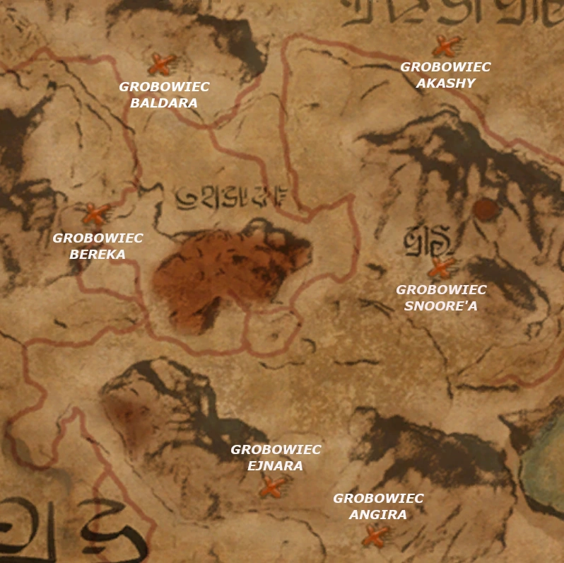 Mapa z podpisanym położeniem grobowców