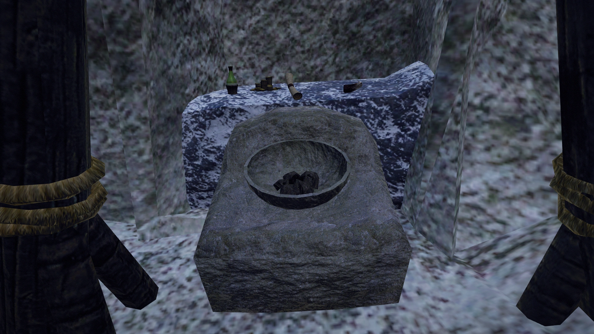 Przed wejściem do środka znajduje się mały obóz z ogniskiem założony przez Osmunda. W środku, w pierwszej sali, przebywa spora grupa szkieletów. Nieco dalej można znaleźć salę tronową Angira. Tutaj również przebywa wiele szkieletów, ale oprócz tego można tu znaleźć ciężką skrzynię oraz runiczny piedestał, na którym znajdują się: wóda, róg bizona, mnóstwo złota oraz zwój przywołania golema.