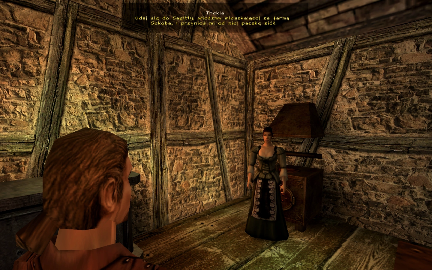 Kiedy Bezimienny dostaje po raz pierwszy gulasz od Thekli, ten bardzo mu smakuje i prosi Theklę o dokładkę. Ta jednak da mu następną porcję, jeśli ten przyniesienie porcję ziół od zielarki Sagitty.