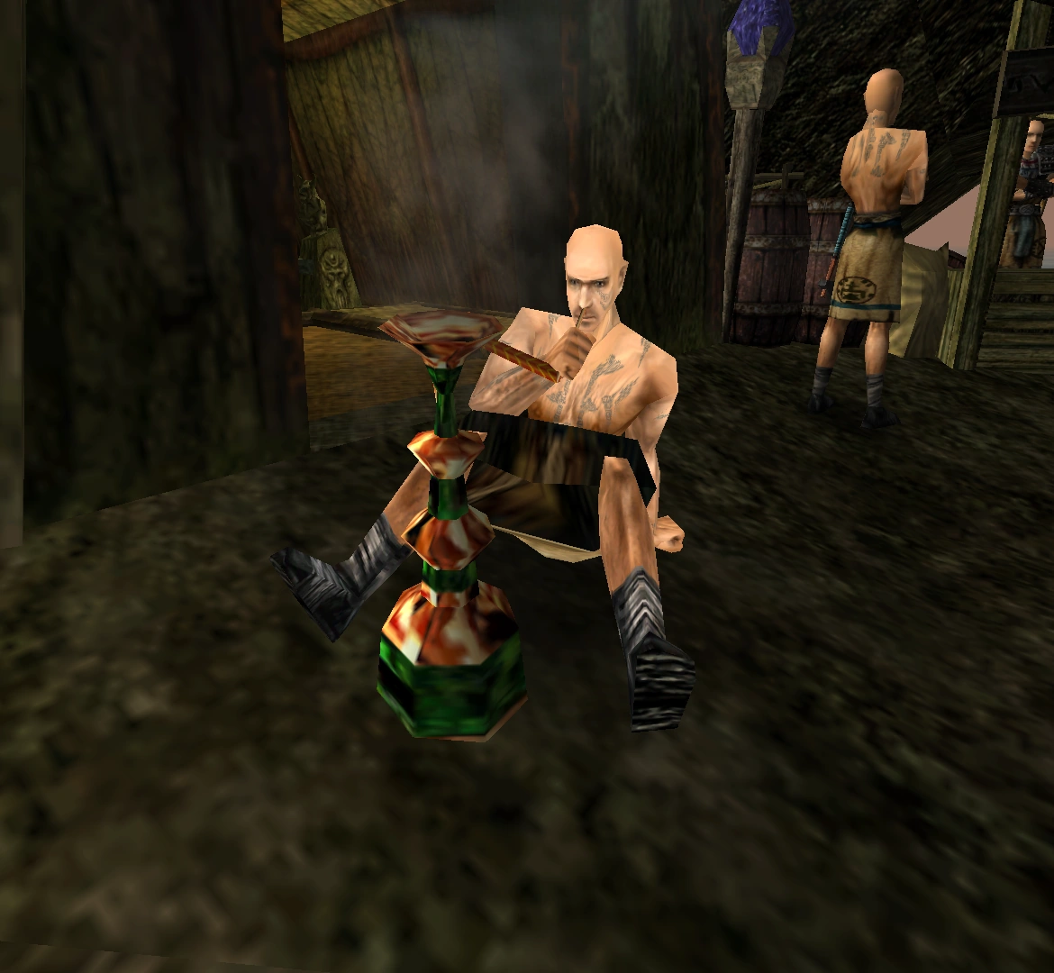 Przebywa przy chacie koło stoiska Fortuna, gdzie pali fajkę wodną. Miał zastąpić Ghorima przy ubijaniu bagiennego ziela, lecz tego nie zrobił. Bezimienny, na polecenie wyczerpanego nowicjusza, może zmusić Harloka do pracy, pokonując go w walce. Po odzyskaniu przytomności Harlok ma żal do protagonisty, że wtrąca się w nie swoje sprawy, ale idzie zastąpić swojego kolegę.