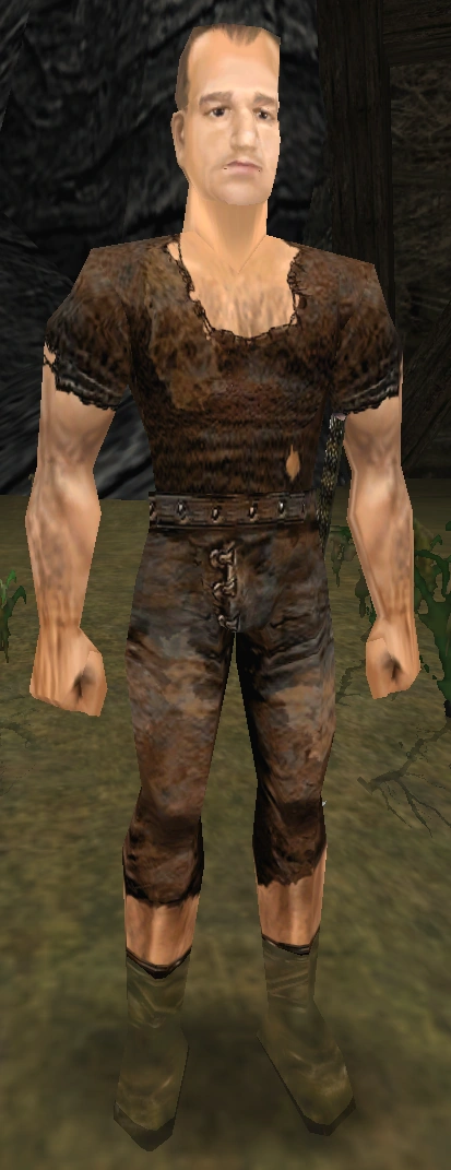 Trafił do kolonii za morderstwo podczas bójki w karczmie. Był kiedyś kowalem i nie docenił swojej siły, przez co doszło do wypadku[1]. Pod barierą nabawił się kłopotów ze strażnikami ze Starego Obozu, dlatego dołączył do Nowego Obozu[2].