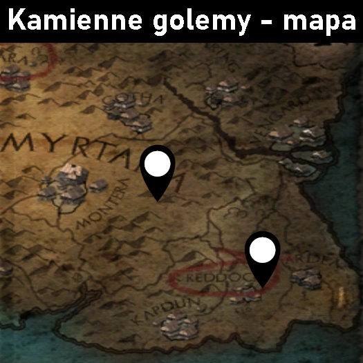 Mapa z zaznaczonym położeniem kamiennych golemów w Gothic 3