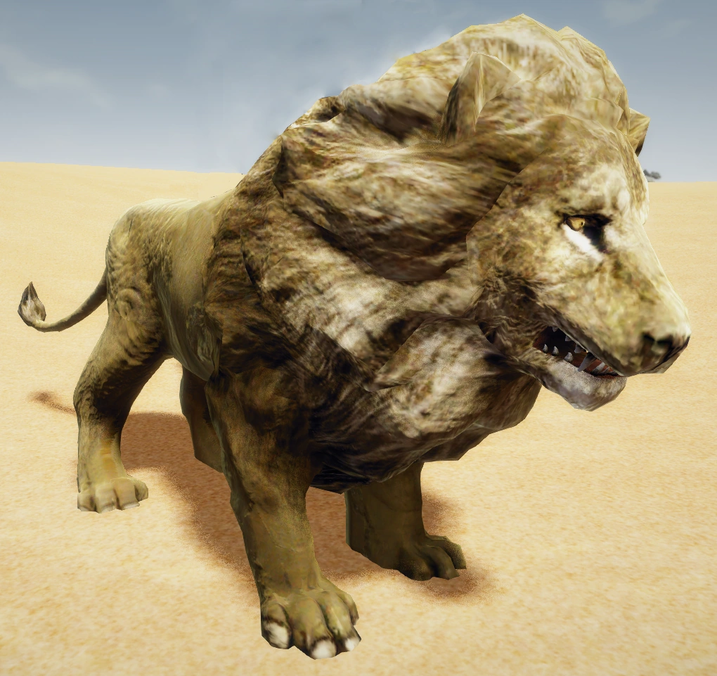 Często występuje przy oazach oraz na terenie pustkowi Varantu. Lwy polują w stadach, na czele których stoją samce. Za nim podążają samice, które można odróżnić po braku grzywy. Jedno stado w takim składzie jest w stanie rozszarpać nawet doświadczonego wojownika. Zauważają ofiarę już z daleka i błyskawicznie zmierzają w jej kierunku, atakują za pomocą pazurów i zębów.