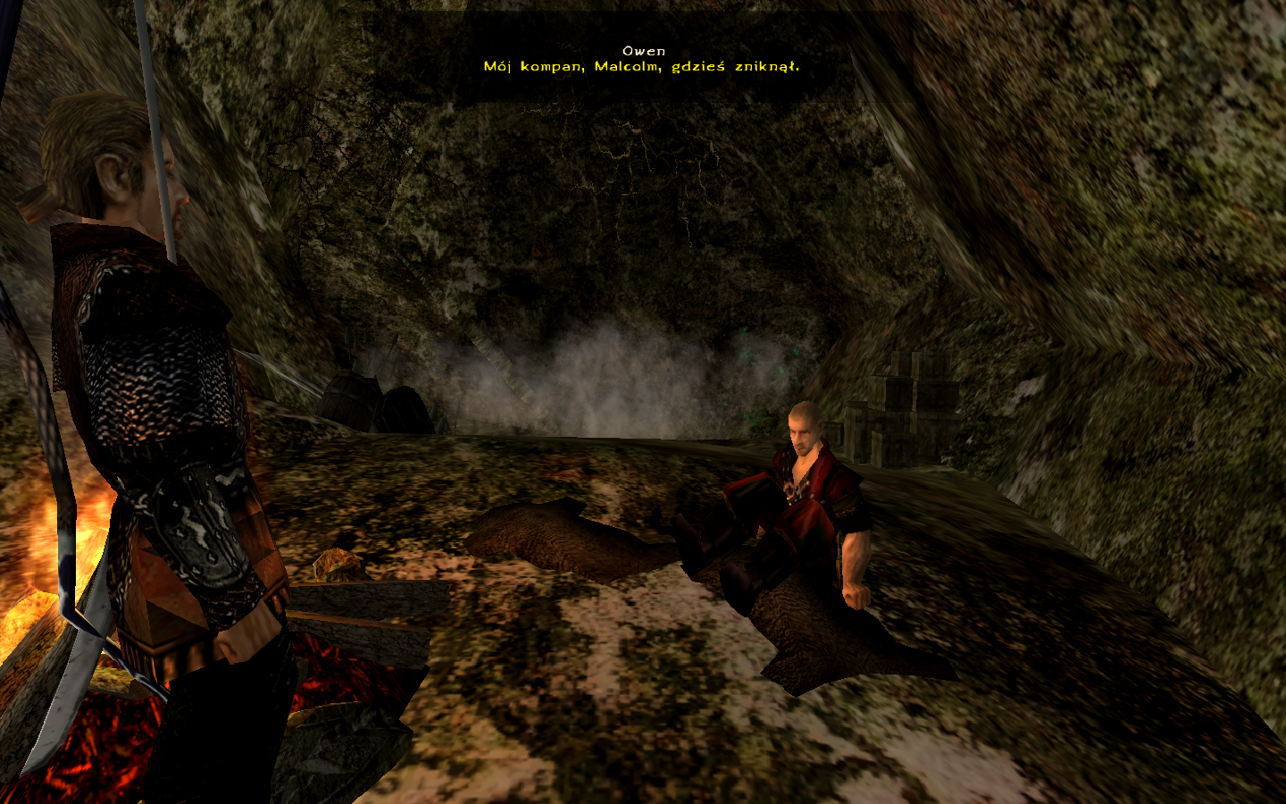 Po pewnym czasie od momentu wejścia do obozu piratów, Bezimienny zauważa że nikt nie pracuje przy wycince drzew. Bohater pyta wypoczywającego przy ognisku Owena, dlaczego sam przebywa w jaskini. Pirat opowiada Bezimiennemu, że on i Malcolm zostali zaatakowani przez topielców. W wyniku tej potyczki i przepychanki z potworami Malcolm w pewnym momencie stracił równowagę i wpadł do jamy wypełnionej wodą wraz z potworami. Owen martwi się, gdyż nie wie co się stało z jego przyjacielem. Bezimienny postanawia odnaleźć nieszczęśnika.