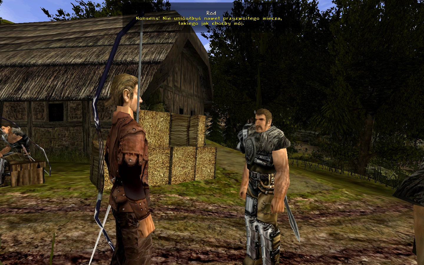 W trakcie pobytu na farmie Onara, Bezimienny rozpoczyna rozmowę z Rodem. Bohater pyta się, czy poprze jego kandydaturę na przyjęcie w poczet najemników. Rod odmawia, gdyż jego zdaniem Bezimienny nie jest w stanie udźwignąć porządnej broni. Uważa, że w szeregach najemników nie ma miejsca dla mięczaków. Urażony tymi słowami bohater nie poddaje się i oznajmia Rodowi, że jest dostatecznie silny, aby móc unieść oręż z prawdziwego zdarzenia. Najemnik rzuca mu wyzwanie: poprze go, jeżeli Bezimienny będzie w stanie udźwignąć jego dwuręczny miecz. Bohater przyjmuje zakład i wpłaca mu ustalone 30 sztuk złota wpisowego. Rod oddaje swój miecz Bezimiennemu, który po chwili bez trudu podnosi oręż. Zaskoczony najemnik nie kryje podziwu dla bohatera i oddaje wygrane przez niego pieniądze. Zadanie kończy się powodzeniem.