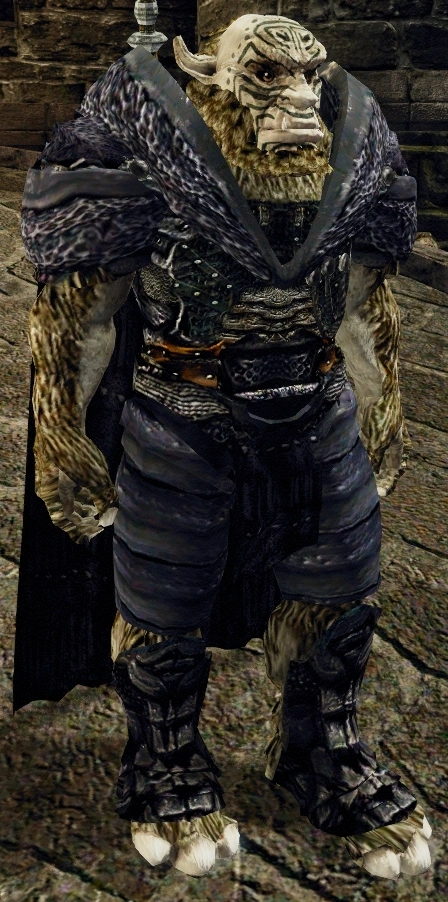 Sam zaczepia Bezimiennego, pytając go czemu się tak kręci po mieście. Może opowiedzieć bohaterowi o Xardasie, którego darzy sporym szacunkiem i uznaje go za mądrego człowieka. Pracuje dla orkowych szamanów i ostrzega bohatera, by traktował ich z należytym szacunkiem, bo inaczej zasmakuje jego ostrza. Opowiada o działaniu miasta i jak zyskać szacunek orków, mówiąc, że do wyboru ma zajmowanie się kopalniami i/lub wojaczkę np. na arenie.