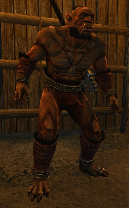 Kiedy Bezimienny przychodzi pod bramę i mówi, że chce dostać się do Erhaga, aby uwolnić lorda Gawaana, Ogbosh oznajmia, że wpuści Bezimiennego w zamian za szkarawudę, czyli mocny trunek orków. Informuje bohatera, że wódę można dostać od wygnanego szamana Meloga, który ma swoją chatę w lasach, w kierunku Tooshoo.