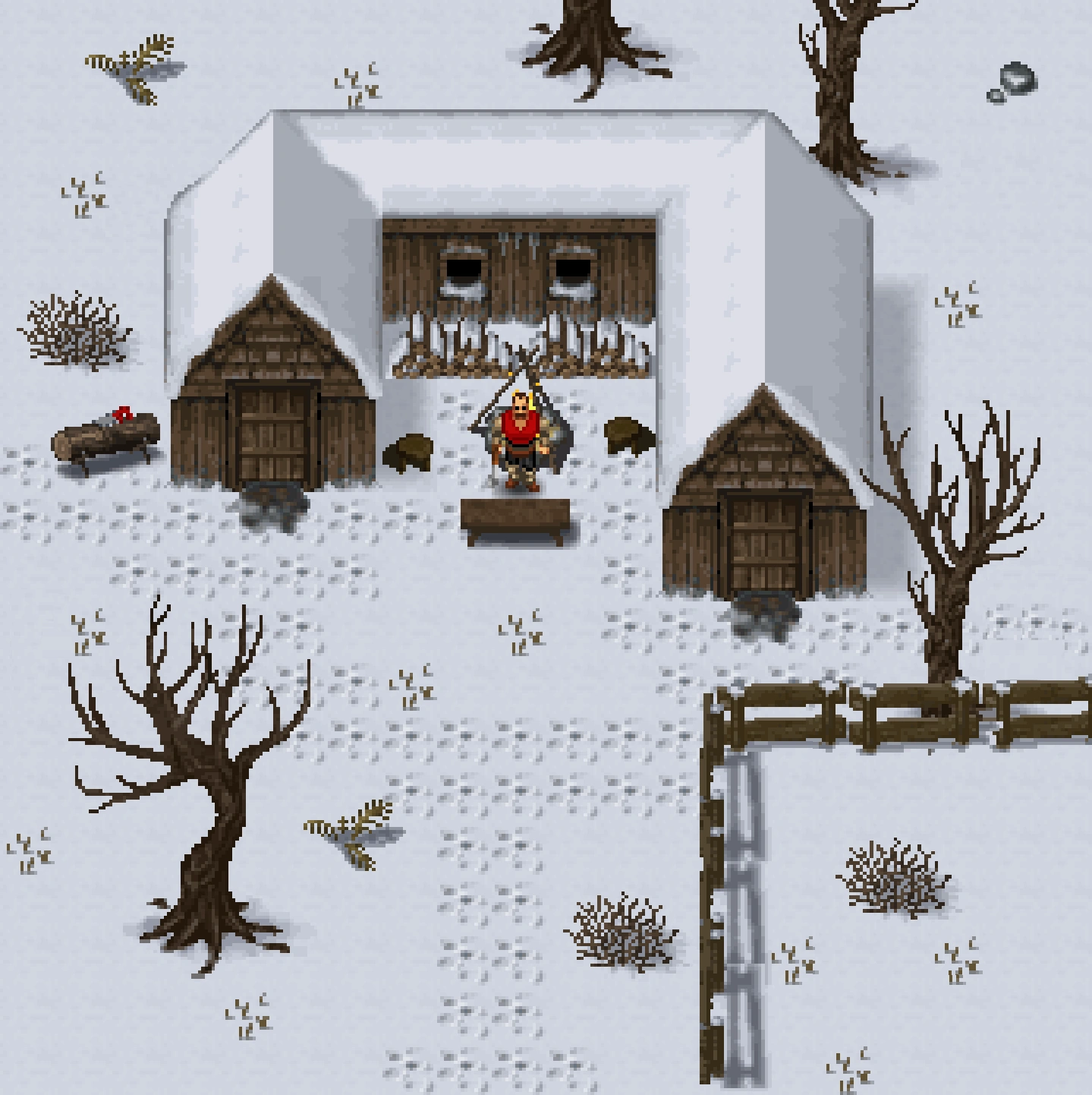 Na zewnątrz gospodarstwa znajduje się zagroda, a także ognisko oraz ławka. Oprócz zagrody na terenie podwórka Jesbara stoi dom mieszkalny, do którego prowadzą dwa wejścia. Obydwa odblokowują się się po rozpoczęciu zadania Perły Tunasa. Lewe jest otwarte i pozwala Xardasowi na rozmowę z właścicielem domostwa, natomiast prawe należy otworzyć przy użyciu wytrycha. Po wejściu do domu od prawej strony bohater może otworzyć skrzynię, w której znajduje łuk oraz ziele orków.