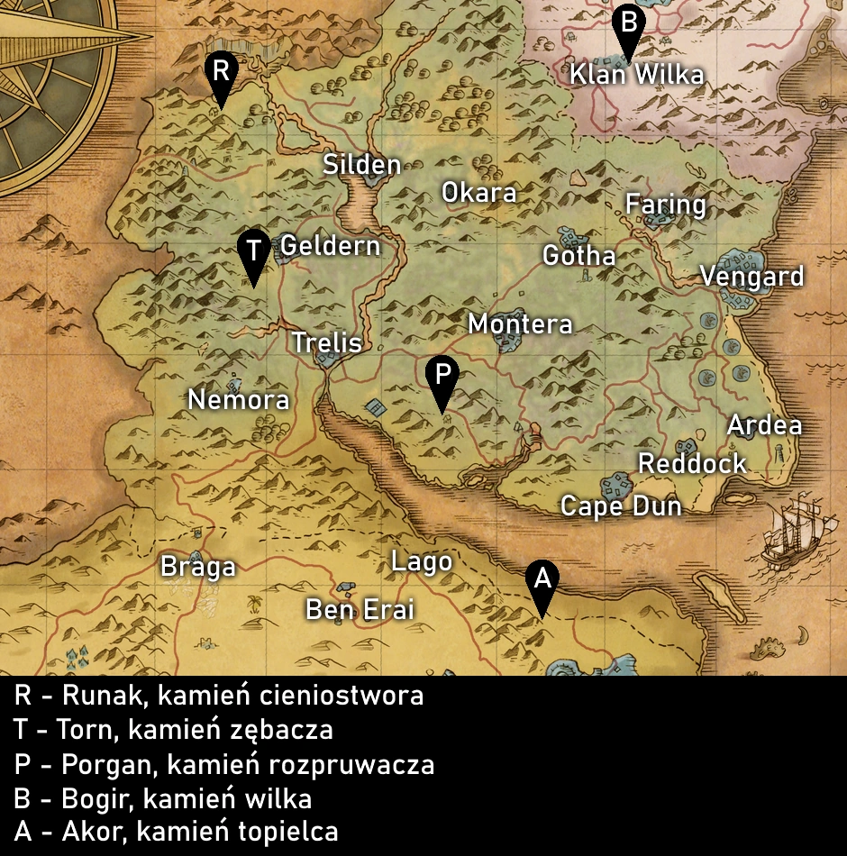 - Podczas rozmowy z Bezimiennym mówi, że posiada kamień dzika, lecz tak naprawdę jest posiadaczem kamienia rozpruwacza.
