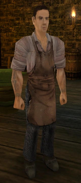 Ma przy sobie żelazny klucz do magazynu Skipa, który można mu ukraść. Jeśli protagonista należy do Starego Obozu kowal za połowę wartości danego pancerza może dla niego ulepszyć: