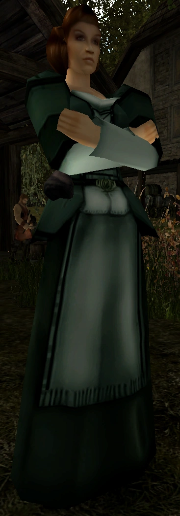 Когда-то она торговала в городе, однако с тех пор, как её отец организовал восстание, она не покидала ферму. Днем она стоит перед сараем, где живут фермеры, а по вечерам разговаривает с Василием в соседнем здании. Безымянный приветствует её словами «Привет, красавица», что может указывать на то, что она одарена исключительной красотой. Фермерша, однако, осторожно относится к установлению знакомства с главным героем, так как она стесняется незнакомцев. Она рассказывает главному герою о наемниках и о ситуации на ферме. Она рада продать ему еду, полученную в результате скотоводства и земледелия. Может продать Безымянному герою пищу для Грома, который в обмен на еду научит героя собирать трофеи животных. Позже в игре выясняется, что фермерша торгует поддельными акциями шахты.