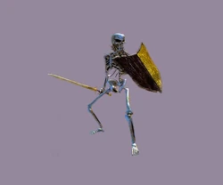 | Эти скелеты вооружены мечом и щитом. Однако щит может защитить их только от ударов, так как они невосприимчивы к стрелам и болтам. Таким образом, эффективным боем остаются только магия и рукопашный бой. Несмотря на все это, скелеты не будут большой проблемой в любой момент игры.