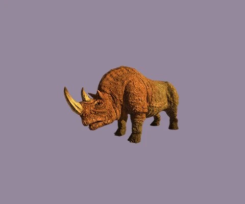 | Третий тип носорогов лишь немного отличается от зеленоватых животных: у них спина коричневатого цвета. В остальном о них можно сказать то же самое, что и о двух других родах носорогов Миртаны. Тем не менее, эти носороги не так сильны, как их собратья из Нордмара, которые также обзавелись шерстяным покровом. | ||||