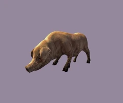 | Свиней иногда можно встретить на фермах Миртаны, а также в кланах Нордмара. Эти свиньи, скорее всего, были выведены от дикого кабана Миртаны. Там их содержат исключительно в качестве откормочных животных. Свиньи — мирные животные, но нападать на них не стоит, иначе придется иметь дело с фермерами. | ||||